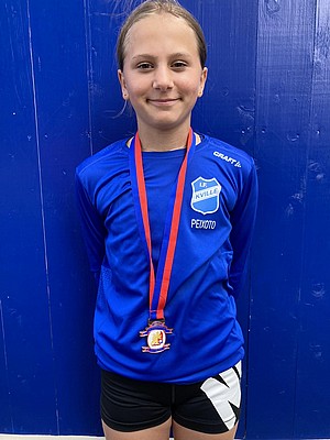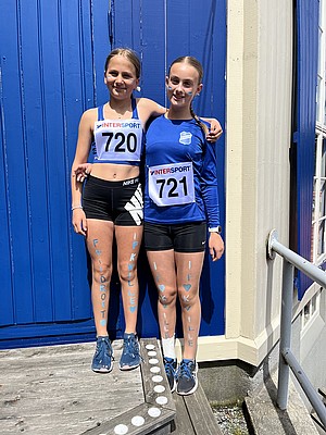 På bild ser ni Hjördis Peixoto och Hannali Sigfridsson utstyrda i Kvilles tävlingsdräkt med blåvit utsmyckning. Både Hjördis och Hannali tävlar flitigt och i år var det första året de var tillräckligt gamla för att vara med på VU-spelen, de gav tävlingen 5/5 Kville-Kent i betyg.