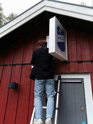 Idag sattes nya fina Kville-skylten på plats på klubbhuset.