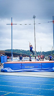 Gabriel Torgersson tävlade i p17 stavhopp och knep en 6:e plats med 3.81 trots att han landade fel i ett av hoppen och gjorde illa sitt knä.